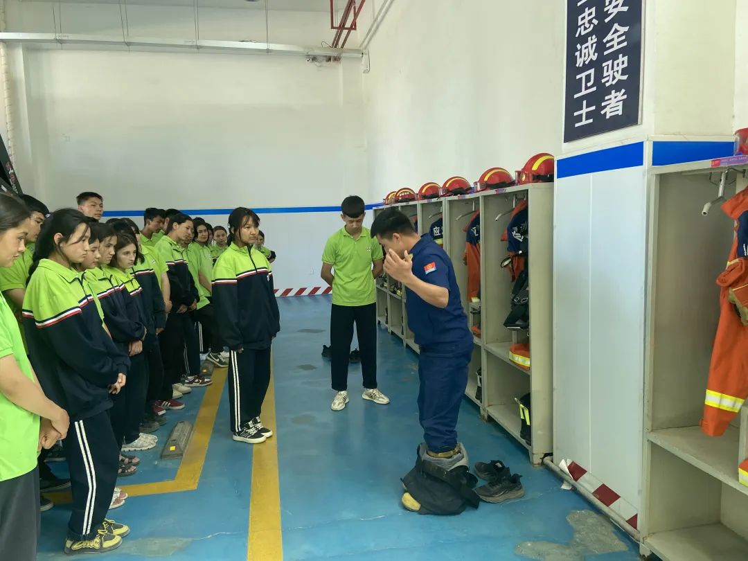 走進(jìn)科普教育基地,消防宣傳員結(jié)合火災(zāi)案例視頻,詳細(xì)講解了重視消防安全的必要性,并就如何撲救初起火災(zāi)、如何使用滅火器材、如何安全疏散和逃生自救等基本消防常識進(jìn)行了講解,使大家對基礎(chǔ)的家庭防火、初起火災(zāi)的撲救以及火場逃生自救的方法有了深層次的理解,讓大家在輕松愉快的環(huán)境下學(xué)會了最基本的消防安全常識,有效提升了自防自救能力。隨后在消防救援人員的帶領(lǐng)下,師生們參觀了營區(qū)環(huán)境,并詳細(xì)地介紹了各種車輛、裝備器材的性能、功用及用途,就如何預(yù)防火災(zāi)發(fā)生、如何正確報(bào)警,如何正確使用滅火器等消防知識,進(jìn)行了普及,對師生們提出的疑問進(jìn)行了詳細(xì)的解答,并現(xiàn)場演示了個(gè)人防護(hù)裝備以及消防器材的使用,邀請師生們試穿戰(zhàn)斗服,使參觀人員真正零距離,學(xué)習(xí)消防、體驗(yàn)消防、感受消防。