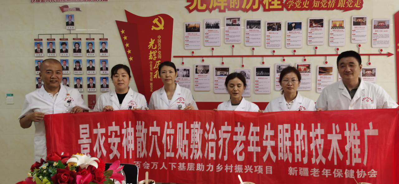 隨著我國老齡化進程的加快,老年失眠的發(fā)病率逐年升高,越來越引起醫(yī)學界的重視。中醫(yī)在治療老年失眠方面突顯出顯著的療效,為積極做好基層醫(yī)院鄉(xiāng)鎮(zhèn)醫(yī)療技術(shù),促進新疆境內(nèi)老年醫(yī)學科的綜合發(fā)展,2023年7月23日,新疆老年保健協(xié)會聯(lián)合自治區(qū)中醫(yī)醫(yī)院老年病科的專家,前往阿克蘇地區(qū)沙雅縣人民醫(yī)院,進行景衣安神散穴位貼敷治療失眠的技術(shù)推廣,現(xiàn)場進行操作,演練,貼敷病人80余人。