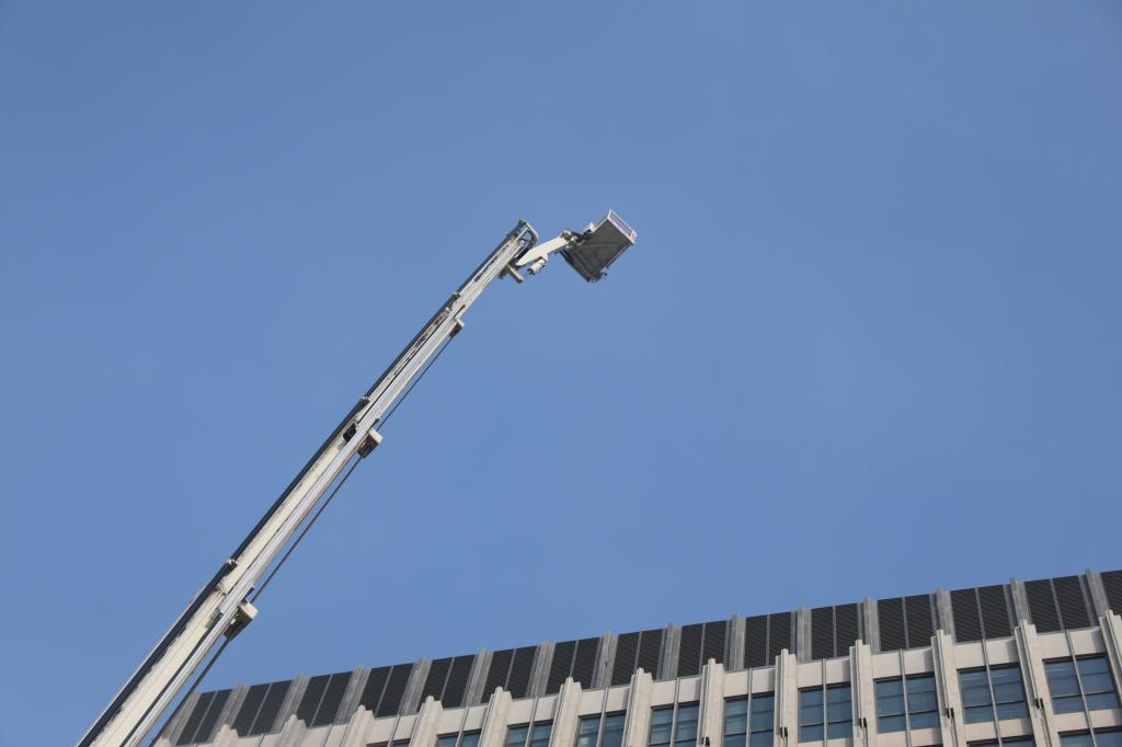 中泰科技樓2023年度滅火及應急疏散演練警情設置:2023年11月25日上午11:00時許,中泰科技樓709辦公室員工誤將未熄滅的煙頭扔至紙簍內,紙簍陰燃并將周邊堆放的紙箱引燃。煙霧觸動煙感報警,消防系統自動控制6-8層卷簾門及電梯門聯動下降,消防廣播啟動播放。709辦公室人員因出口火情嚴重無法逃生,在室外陽臺等待消防登高車救援,其他各樓層人員按照疏散路線及時疏散至指定避難點。疏散過程中有1人腳部扭傷無法自行下樓,需要救治。
