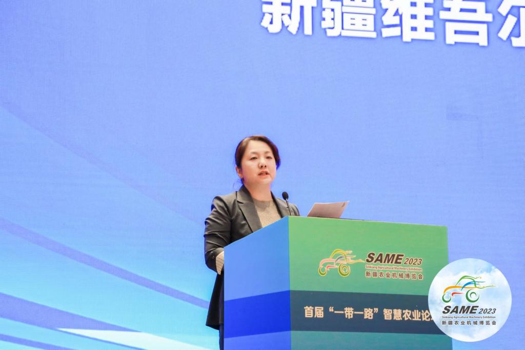5月26日,首屆“一帶一路”智慧農業論壇在烏魯木齊市新疆國際會展中心召開。本論壇由自治區科協、中國農業機械流通協會、自治區農業農村機械化發展中心等單位主辦,新疆農業機械學會、新疆維吾爾自治區農牧業機械化技術推廣總站、新疆國際會展有限公司等單位承辦。自治區農業農村廳黨組成員、副廳長李晶,自治區科協黨組成員、副主席擺曉宏,中國農業機械流通協會副會長、秘書長陳濤出席論壇并致辭,自治區農業農村機械化發展中心黨委書記、副主任、一級巡視員謝國政主持論壇開幕環節。