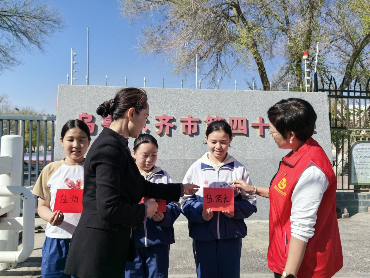 協會黨支部書記王琳萍帶領黨員、職工群眾前往烏魯木齊市第四十中學,為3名同學送去了關懷和溫暖,并捐贈愛心慰問金,勉勵3名同學要認真努力學習,通過知識改變命運。