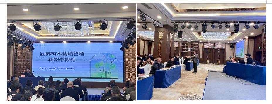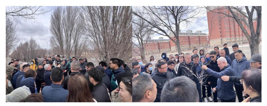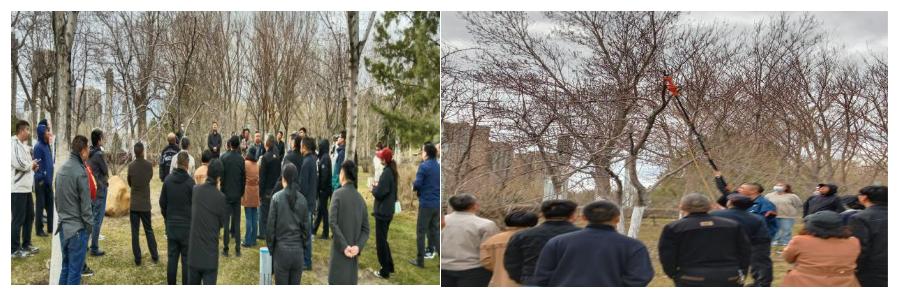 培訓中,烏魯木齊市米東區園林管理局謝貽軍教授在園林樹木的栽培與管理及樹木的整形和修剪兩個方面進行講解,采用具體工程案例的方式結合40余年的工作經驗,在園林樹種的選擇、栽植季節、園林樹木的(土、肥、水)管理等方面對學員進行了培訓并和學員互動交流。