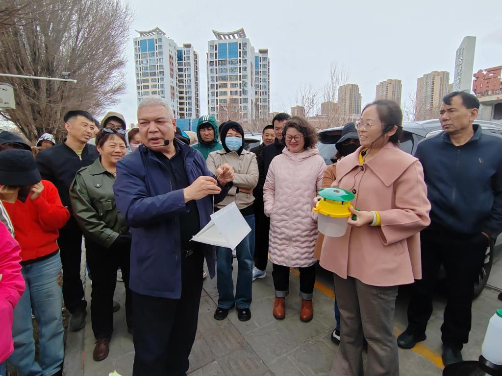 31號下午,新疆風景園林學會組織學員赴克拉瑪依市經三路與橫五路交匯路口、經六路與世紀大道交匯路口、油建路與南新路交匯路口,阿地力?沙塔爾教授對現場發生的糖槭蚧和棗大球蚧、楊樹腐爛病、臍腹小蠹三種病蟲害采用現場實操教學的方式進行了講解,同時對各類誘捕器的使用技術和規范進行了培訓。