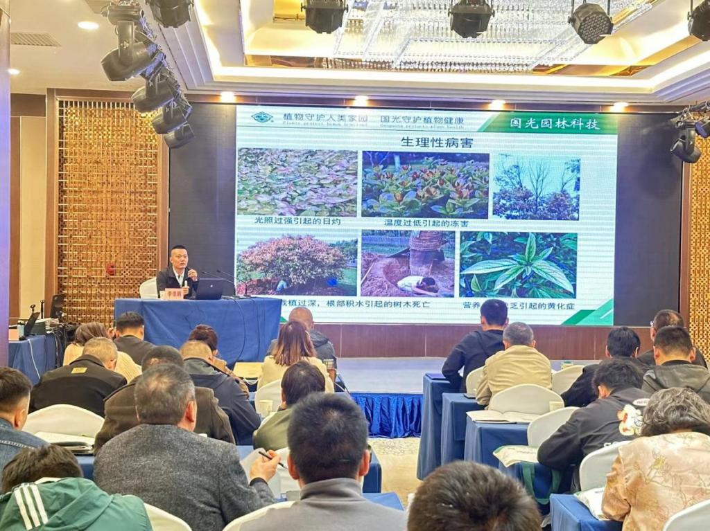 四川國光園林科技股份有限公司李德鵬工程師通過科學施肥、利用植物化控技術、園林養護機具使用等9個方面如何降低養護成本進行了培訓。