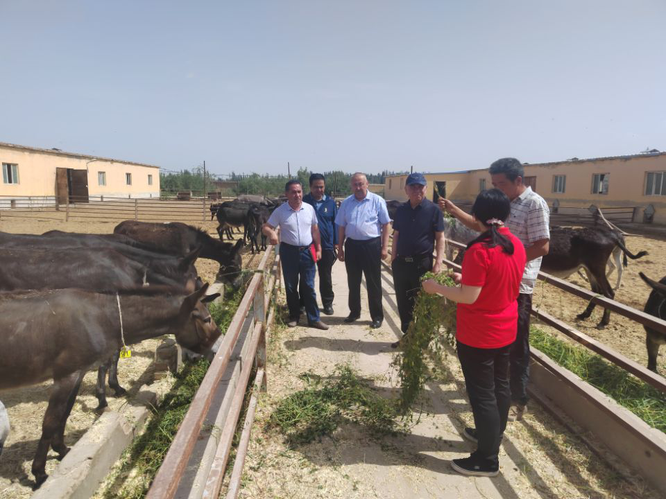 6月6日下午和6月7日,調研組專家走訪了岳普湖縣的規模驢場、合作社以及澤普縣新疆金胡楊牧業有限公司、新疆金胡楊藥業有限公司和養殖戶,現場了解了“疆岳驢”的畜群結構、飼養管理、產業發展等情況。