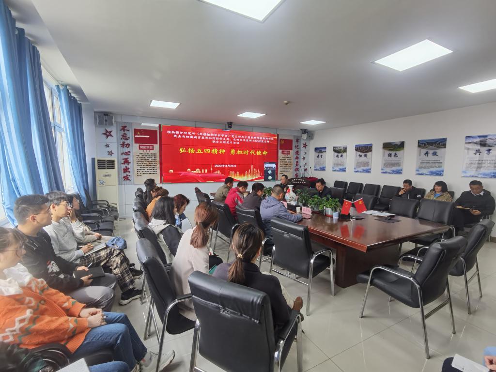 2023年4月25日,在“五一”國際勞動節(jié)及“五四”青年節(jié)來臨之際,為落實(shí)《中共中央關(guān)于在全黨深入開展學(xué)習(xí)貫徹習(xí)近平新時代中國特色社會主義思想主題教育的實(shí)施意見》和黨中央及自治區(qū)黨委主題教育工作會議精神,以及《新疆農(nóng)業(yè)科學(xué)院深入學(xué)習(xí)貫徹習(xí)近平新時代中國特色社會主義思想主題教育工作會議》精神。植物保護(hù)研究所(新疆植物保護(hù)學(xué)會)黨支部、中國農(nóng)科院植保所作物線蟲與細(xì)菌病害監(jiān)測和防控黨支部及中國農(nóng)科院植保所農(nóng)田雜草監(jiān)測與防控黨支部以“弘揚(yáng)五四精神,勇?lián)鷷r代使命”為主題,聯(lián)合舉辦主題黨日活動,新疆植物保護(hù)學(xué)會理事長郭文超研究員作為特邀嘉賓參加并主持了此次活動,三個支部共計41人參加。