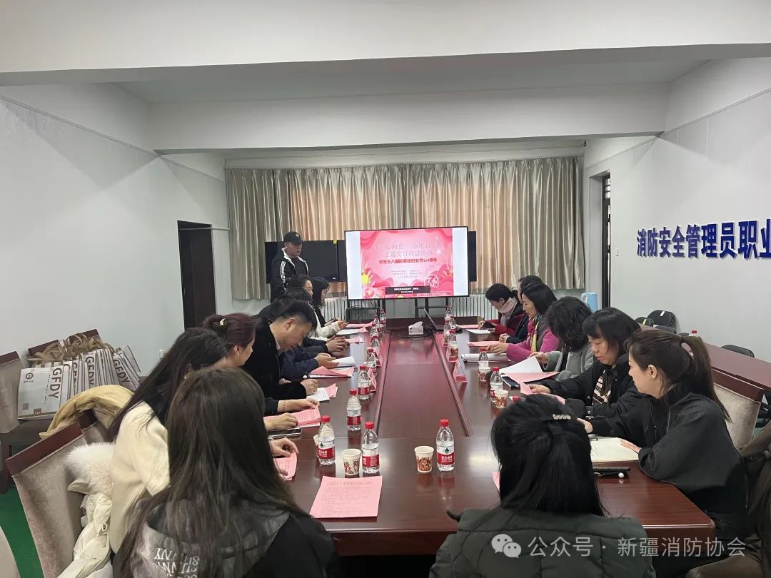 情暖三八節,巾幗綻芳華。在第114個“三八”國際婦女節來臨之際,為營造健康、和諧、積極向上的節日氛圍,2024年3月7日下午,新疆消防協會黨支部聯合新疆人民防空科技協會、新疆保險協會(學會)、新疆房地產協會、新疆鑫金盾技工學校、上海蘭迪(烏魯木齊)律師事務所聯合組織召開紀念第114個“三八”國際婦女節暨主題黨日活動,大家齊聚一堂,寄語昨天、展望未來、歡度節日。主題黨日活動由新疆人防科技協會秘書長劉健主持,新疆科技社團黨委委員、新疆消防協會黨支部書記、秘書長閆懷宣和新疆房地產業協會副會長兼秘書長張靜、新疆保險協會秘書長周凌、新疆鑫金盾技工學校校長助理慕剛以及黨員、會員代表參加活動。