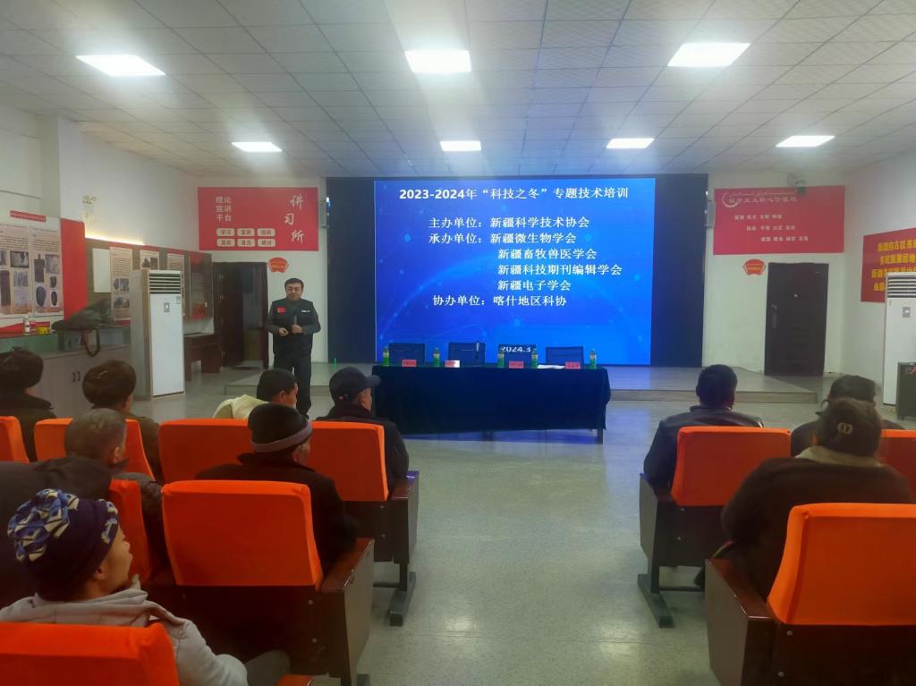 2024年1月25日,新疆微生物學(xué)會(huì)理事長(zhǎng)助理高雁研究員,新疆畜牧獸醫(yī)學(xué)會(huì)副理事長(zhǎng)鄭新寶研究員,哈爾阿力·沙布爾研究員等三位專家,在喀什市英吾斯坦鄉(xiāng)古尼恰艾日克村圍繞促進(jìn)喀什市畜牧業(yè)高質(zhì)量發(fā)展為主題進(jìn)行培訓(xùn)。培訓(xùn)通過(guò)“理論+案例+解答”相結(jié)合的方式,圍繞牛羊飼養(yǎng)管理、牛羊品種選擇、牛羊繁育技術(shù)、牛羊育肥技術(shù)、圈舍科學(xué)管理、牛羊糞便肥料化技術(shù)、青貯飼料制作技術(shù)、牛羊常見(jiàn)病、傳染病、疫病等診斷和防治技術(shù)的相關(guān)養(yǎng)殖知識(shí)進(jìn)行了詳細(xì)的培訓(xùn)。培訓(xùn)現(xiàn)場(chǎng)互動(dòng)熱烈,氣氛活躍,學(xué)員積極性很高,培訓(xùn)內(nèi)容具有很強(qiáng)的針對(duì)性和實(shí)用性,增強(qiáng)了畜牧技術(shù)員和養(yǎng)殖戶的專業(yè)技術(shù)和實(shí)際操作能力。