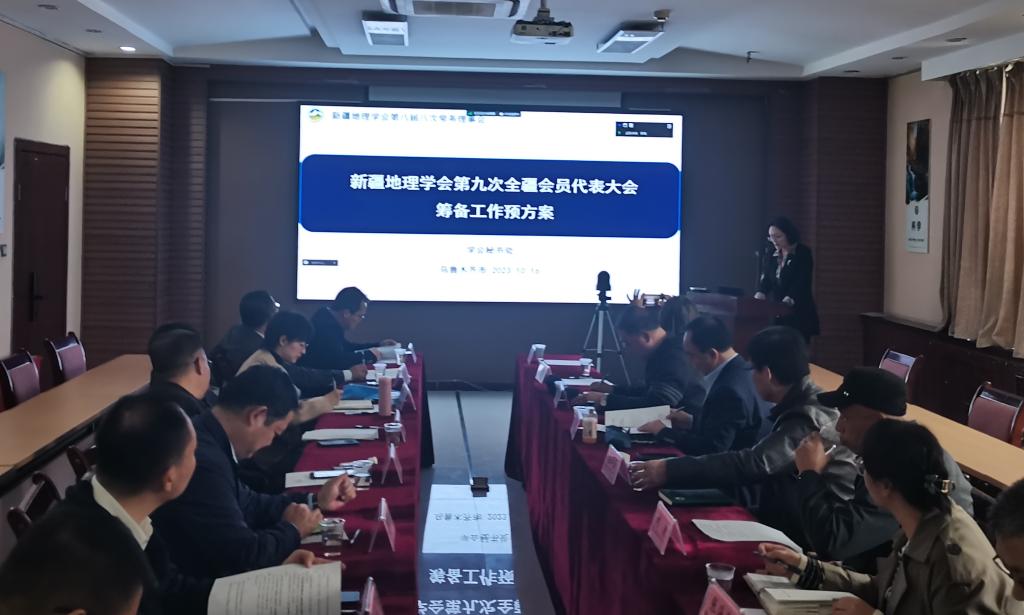 會議首先研究討論了《新疆地理學會第九次全疆會員代表大會籌備工作方案》,商討了代表大會主題,內容、時間、地點、規模等事項,研究了理事會規模、候選人條件、組成原則及名額分配辦法,確定了換屆領導工作組及換屆籌備工作組及人選,具體對工作報告、修改章程報告及財務審計工作和財務報告起草安排了專人負責。