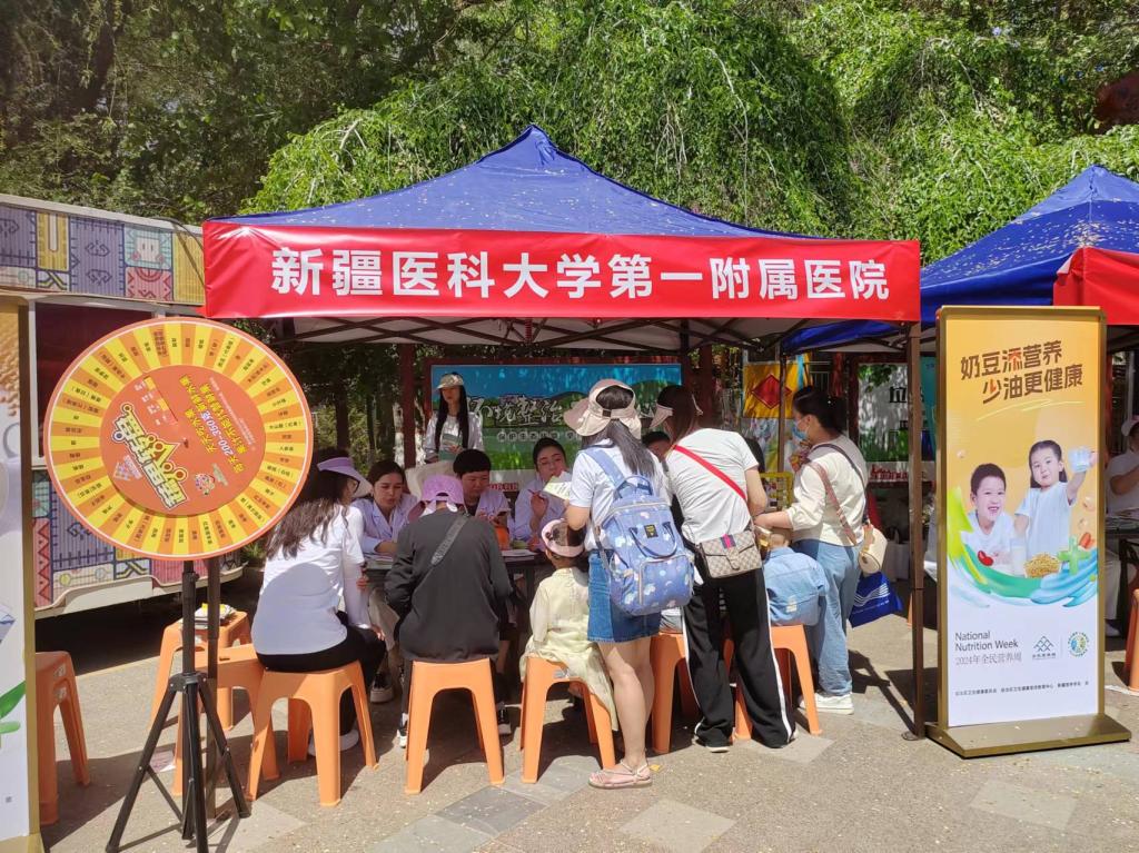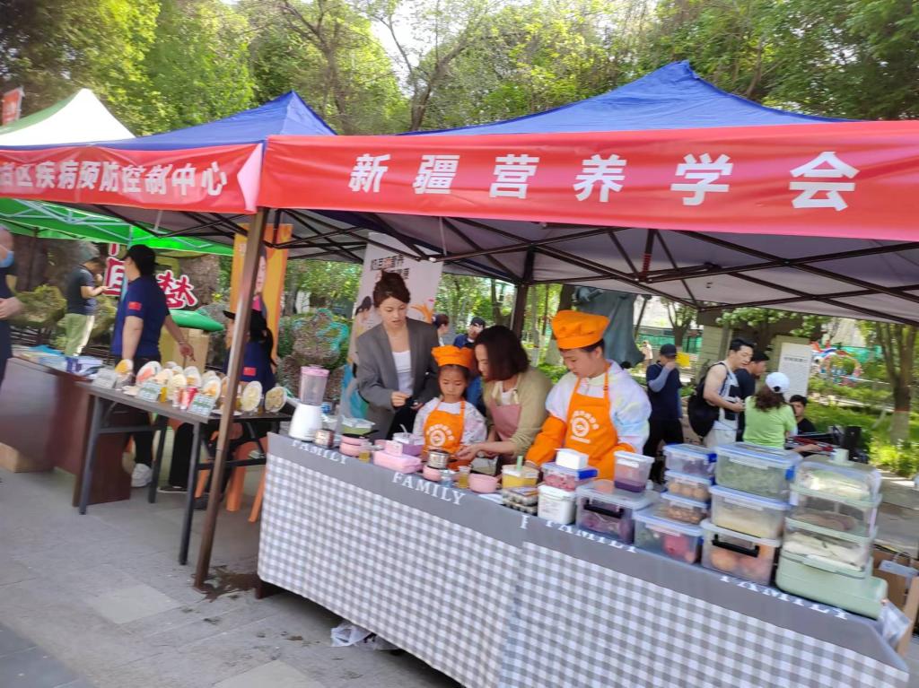 活動現場,新疆營養(yǎng)學會、新疆醫(yī)科大學第一附屬醫(yī)院、自治區(qū)人民醫(yī)院、自治區(qū)中醫(yī)醫(yī)院、自治區(qū)疾病預防控制中心、烏魯木齊市疾病預防控制中心、烏魯木齊市營養(yǎng)師協會等單位同步開展了各類人群營養(yǎng)診療義診、全民健身操運動體驗、健康知識問答互動、老年保健手指操互動、老年抗阻運動體驗、做健康美味飲食、親子互動游戲等內容的趣味性科普體驗活動。