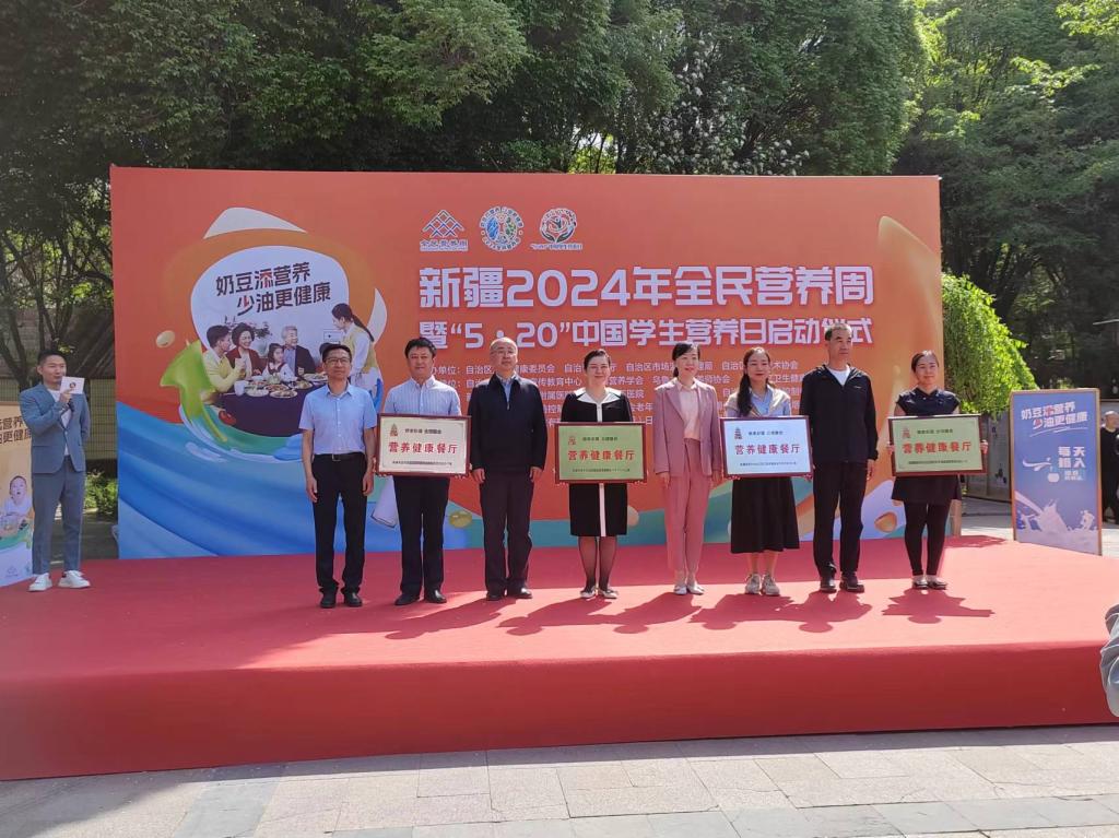 主場啟動活動還舉行了營養(yǎng)健康食堂的授牌儀式,獲此殊榮的單位分別是:新疆四七四醫(yī)院、烏魯木齊市友誼醫(yī)院、烏魯木齊市中醫(yī)院、烏魯木齊市第一人民醫(yī)院(烏魯木齊兒童醫(yī)院)、昌吉益達紡織有限公司、烏魯木齊養(yǎng)臻堂飲食文化有限公司。