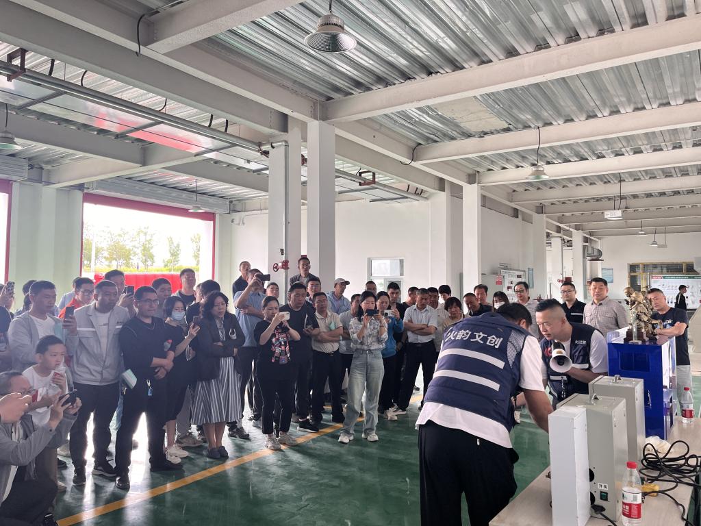 會上,全體人員練習使用滅火器,準確、熟練掌握滅火器“一提、二拔、三握、四壓”的正確使用方法。浙江睦田消防科技開發有限公司員工現場演示了環保型滅火器的滅火效果。新疆科普教育基地—新疆火韻文化陳列館館長張運帶領消防科普團隊展示了公司研發的電子模擬滅火器使用和建筑火災延誤走向演示產品,產品展示和科普宣傳體驗活動在科協“科創中國”平臺現場直播。