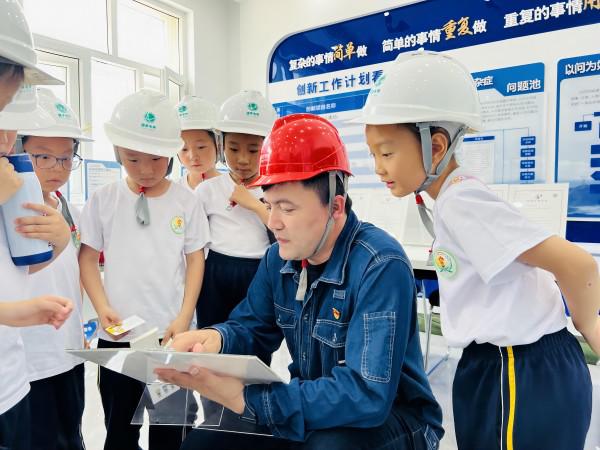 博樂市錦繡小學師生在全國示范性勞模和工匠人才“艾沙江·尼扎木丁”創新工作室參觀學習