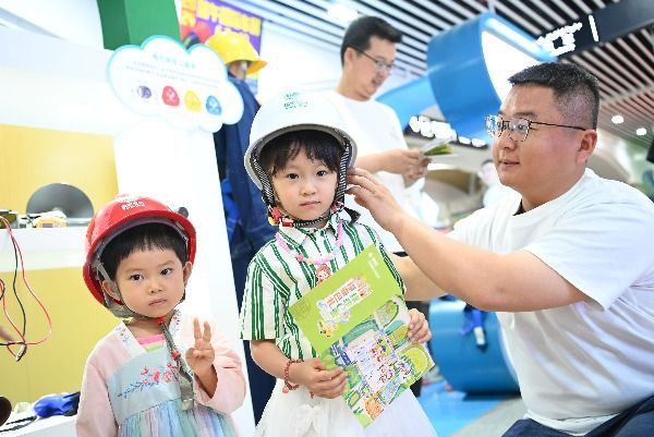 學會電力科普工作人員給參與拼圖活動的小朋友打卡蓋章。