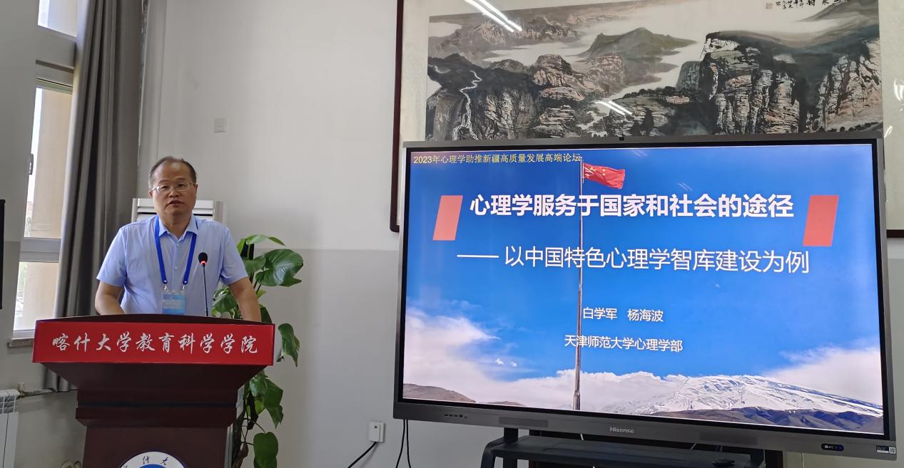 2023年7月13日,由新疆心理學(xué)會(huì)主辦,喀什大學(xué)教育科學(xué)學(xué)院、新疆師范大學(xué)心理學(xué)院、新疆心智發(fā)展與學(xué)習(xí)科學(xué)重點(diǎn)實(shí)驗(yàn)室承辦的“心理學(xué)助推新疆高質(zhì)量發(fā)展”高端論壇在喀什大學(xué)隆重召開(kāi)。會(huì)議由喀什大學(xué)教育科學(xué)學(xué)院黨委書(shū)記余鵬教授主持,喀什大學(xué)校黨委副書(shū)記趙斌同志出席會(huì)議并致辭。