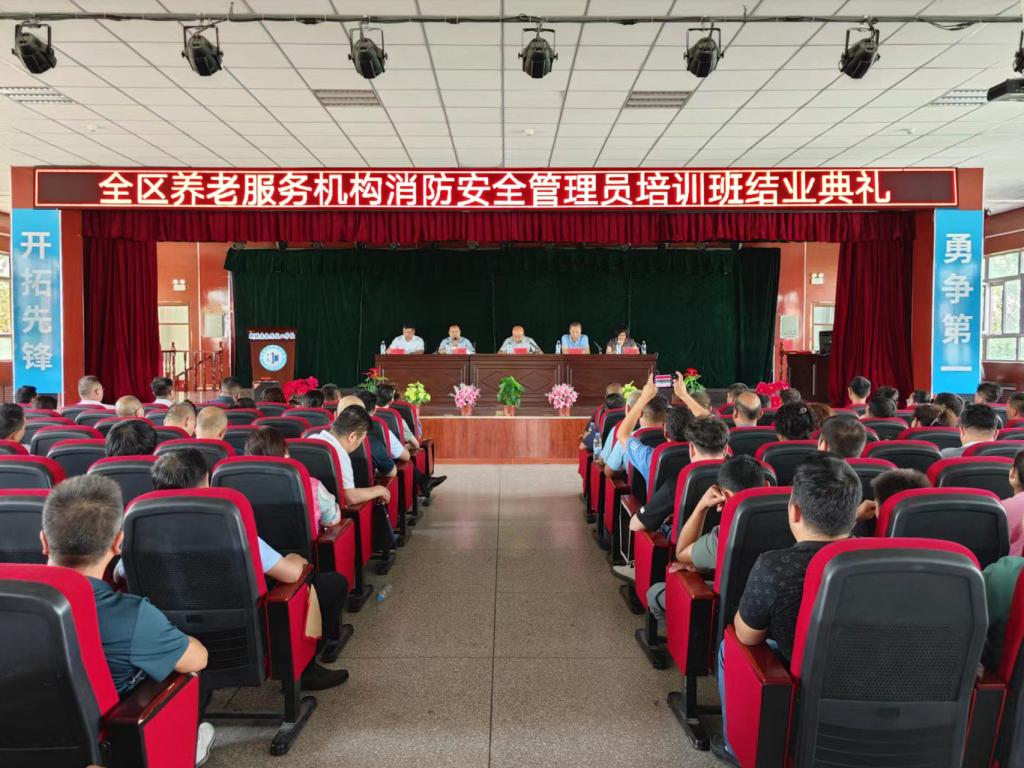 2023年6月16日至19日,為期四天的2023年度全區養老機構消防安全管理員培訓班順利結業。自治區民政廳養老服務處三級調研員張宏偉,民政廳養老服務處趙奉,新疆消防協會會長張照雄,秘書長閆懷宣,新疆鑫金盾技工學校校長李小壘等出席結業典禮。