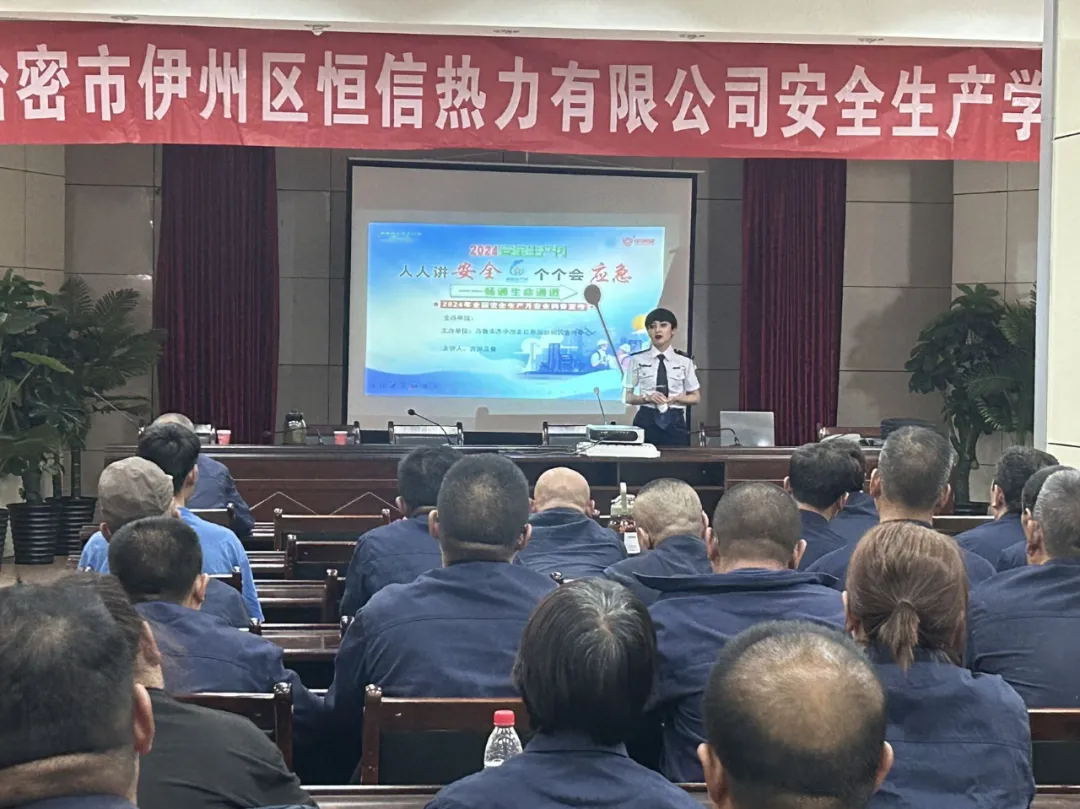 按照第23個全國“安全生產月”活動部署;聚焦“人人講安全,個個會應急一暢通生命通道”活動主題,2024年6月6日,應哈密市伊州區恒信熱力有限公司邀請,協會委派烏魯木齊中消安應急消防知識宣傳中心開展講座,重點圍繞消防安全“防火墻”的“四個能力”,結合火災案例,針對各行業火災特點和預防要求,講解了單位負責人、管理人、職工的防火職責、義務、相關法律法規,增強了公司職工防火意識,提高了應對火災自防自救能力。