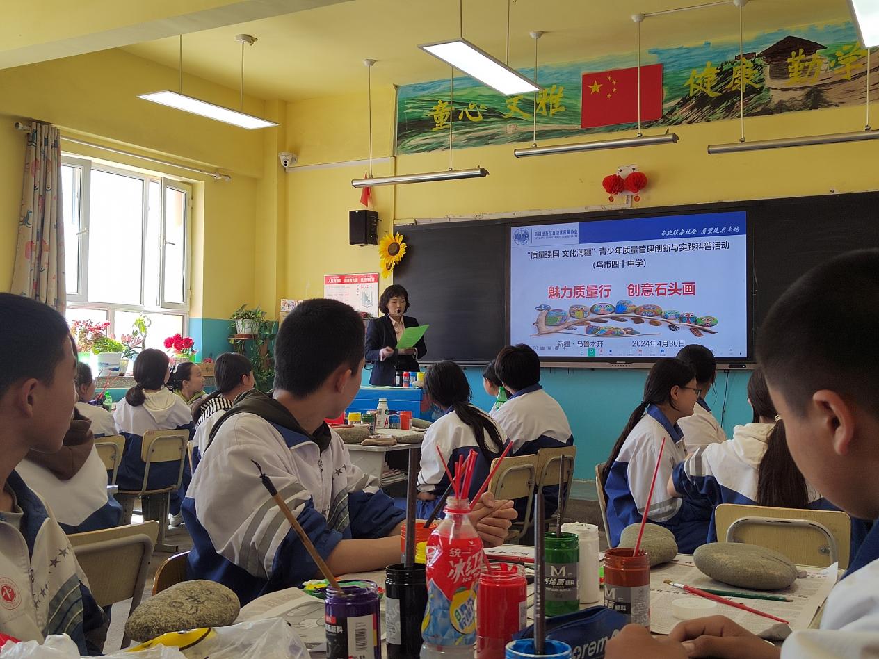 4月30日,新疆質量協會走進烏魯木齊市第四十中學,開展“質量強國 文化潤疆”青少年質量管理創新與實踐科普活動,本次活動以“魅力質量行,創意石頭畫”為主題,將青少年質量創新活動與學校特色石頭畫相結合,啟發青少年科學思維方式,強化實踐能力,養成想好了再干,一次把事情做好的良好行為習慣,助力青少年健康成長,成就美好未來。