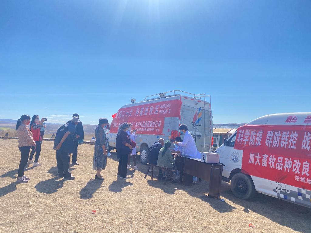 在塔城市鐵列克提牧場,地區(qū)畜牧科技研究推廣中心高級牧師巴合提就新疆褐牛的養(yǎng)殖、品種改良、疾病預(yù)防等知識進(jìn)行了授課。塔城市人民醫(yī)院的醫(yī)護(hù)人員為牧民進(jìn)行血壓測量和心音聽診,對牧民常見病、多發(fā)病提供診查服務(wù),幫助牧民做到“未病先防,小病先治”。