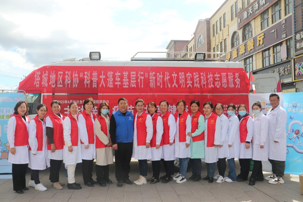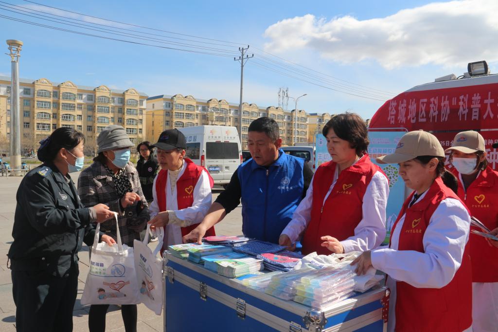 在第37個“全國兒童預防接種宣傳日”來臨之際,塔城地區(qū)科協(xié)聯(lián)合地(市)衛(wèi)健委、地(市)疾控中心、塔城市杜別克、和平、新城社區(qū)衛(wèi)生服務中心,組織18名醫(yī)務工作者、科普志愿者,出動兩輛宣傳車,圍繞“主動接種疫苗,共享健康生活”主題,在塔城市華寶國際市場、文化廣場開展兒童預防接種科普宣傳活動。