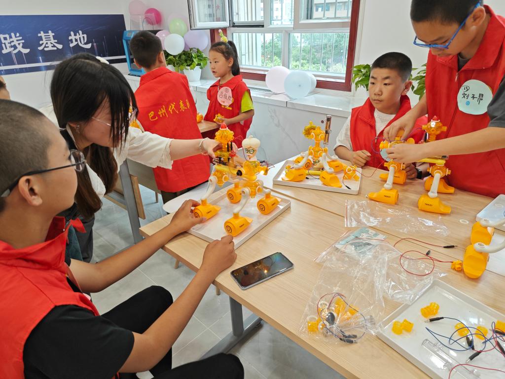 巴州科技館的兩名科技輔導員老師分別給青少年們帶來《小臺燈》和《電風扇》兩堂有趣的科學課,青少年們在老師的指導下拼裝小臺燈、電風扇,鍛煉動手能力,學習電池正負極、電流方向等知識。