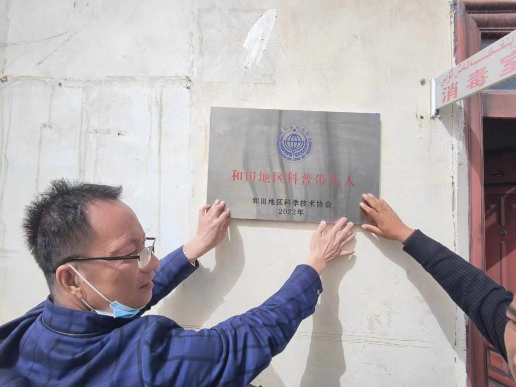 為樹立典型、鼓勵先進、獎勵帶動農牧民養殖業提質增效富民增收。2023年3月24日,和田地區科協、民豐縣科協為民豐縣葉亦克鄉阿克塔什村科普帶頭人麥麥提明·麥提鐵木爾同志進行了表彰掛牌,隨后麥麥提明發揮科普帶頭人作用,對本鄉鎮70名養殖戶進行養殖技術培訓,地區科協為農戶贈送種植養殖技術書籍、知識與力量讀本150余冊。
