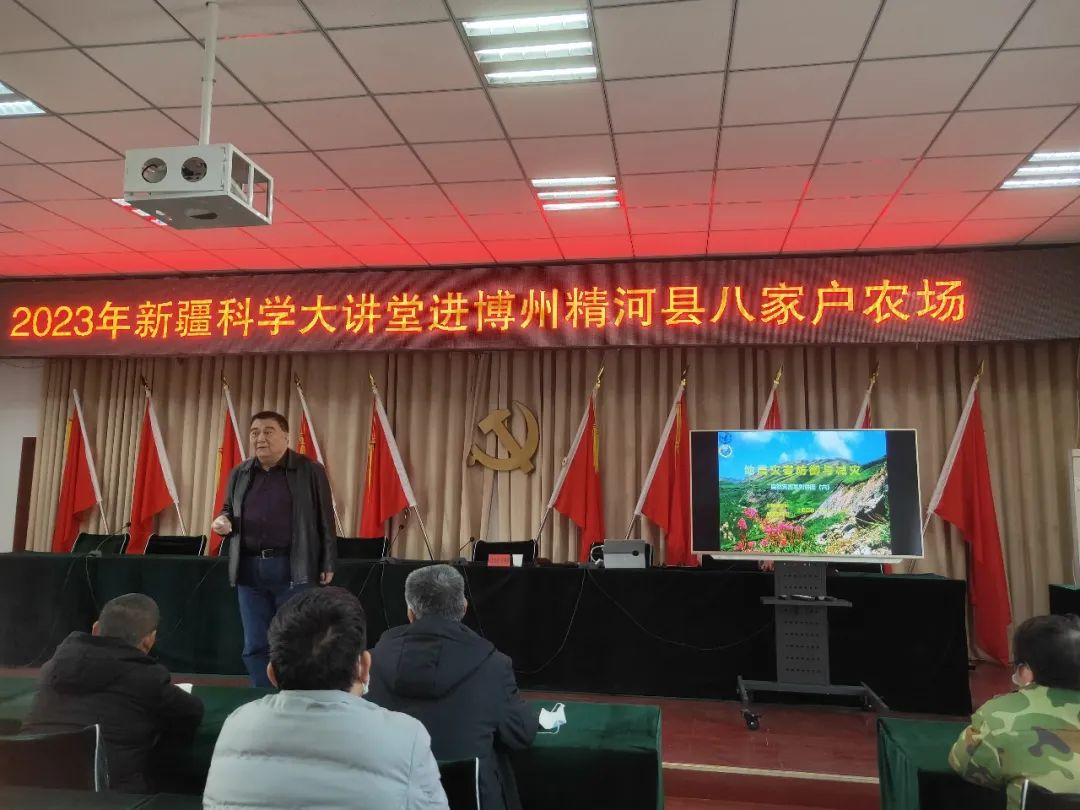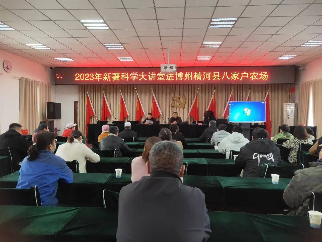 3月19日上午,“新疆科學大講堂”專家組一行6人來到博州精河縣八家戶農場機關、農業七隊、牧業四隊開展科普宣講活動,為基層群眾送科技、送健康、送溫暖。