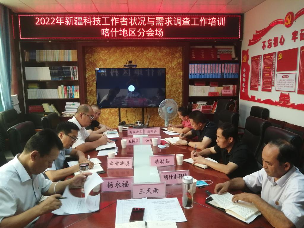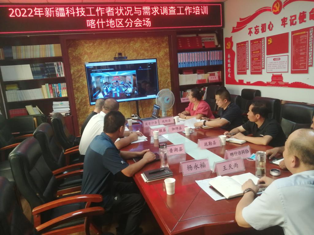 7月7日下午,喀什地區科協召開2022年新疆科技工作者狀況與需求調查工作培訓會議。喀什市、疏勒縣、疏附縣、伽師縣、英吉沙縣、岳普湖縣、麥蓋提縣等7個縣(市)的科協主要領導到喀什地區科協參加會議。
