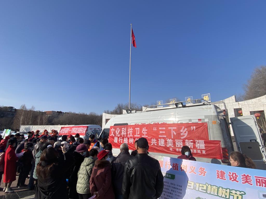 3月12日,塔城地、市科協聯合地區林業和草原局共同舉行植樹節科普宣傳活動。