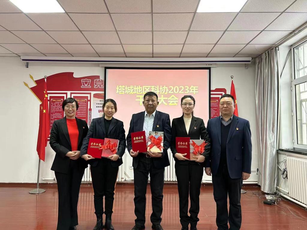 1月10日,塔城地區科協召開干部大會,對2022年度在學習、推進重點工作任務中成績突出者,被評為“學習之星”“黨員之星”“崗位之星”的4名黨員干部予以通報表彰。黨組班子成員分別為授表彰的同志頒發了榮譽證書并贈送紅色書籍。
