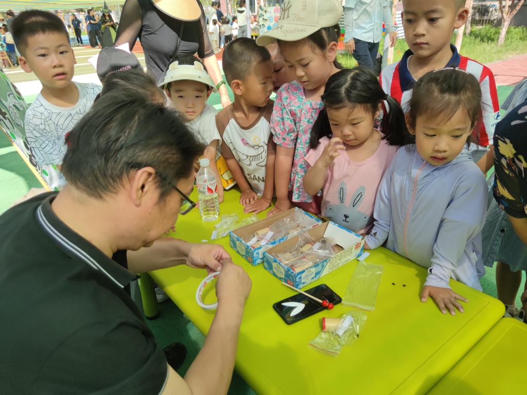 隨后,夏日科學(xué)派對在幼兒園的操場上拉開了序幕,夏日綿綿冰、荷塘、彩虹泡泡、竹蟬、水中畫等10余項(xiàng)充滿創(chuàng)意和趣味的科學(xué)實(shí)驗(yàn)活動(dòng),讓孩子們興奮不已,使他們在動(dòng)手體驗(yàn)的過程中感受到了科學(xué)的樂趣與魅力。
