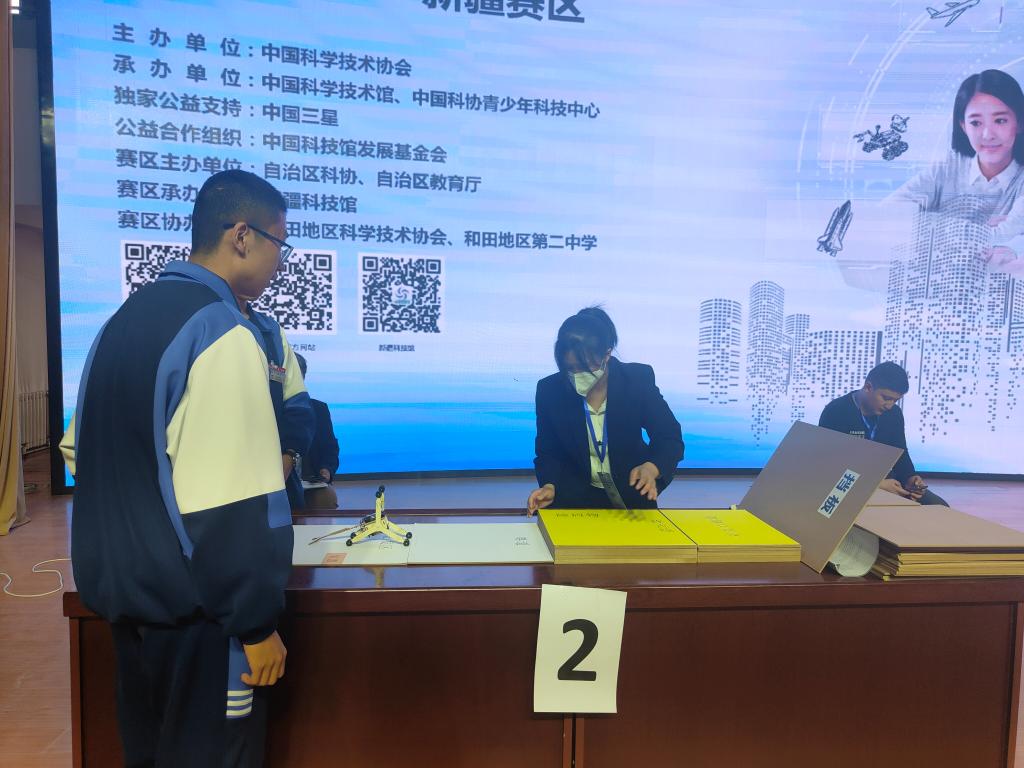 第九屆大賽重點(diǎn)圍繞“智慧·安全·環(huán)保”三大主題,關(guān)注前沿科學(xué)技術(shù)、公共安全健康等領(lǐng)域的科研應(yīng)用與普及,考察青少年“發(fā)現(xiàn)問題、解決問題及動(dòng)手實(shí)踐”能力。來自和田地區(qū)第一中學(xué)、第二中學(xué)等五所學(xué)校的113支參賽隊(duì)226名學(xué)生參與此次比賽。