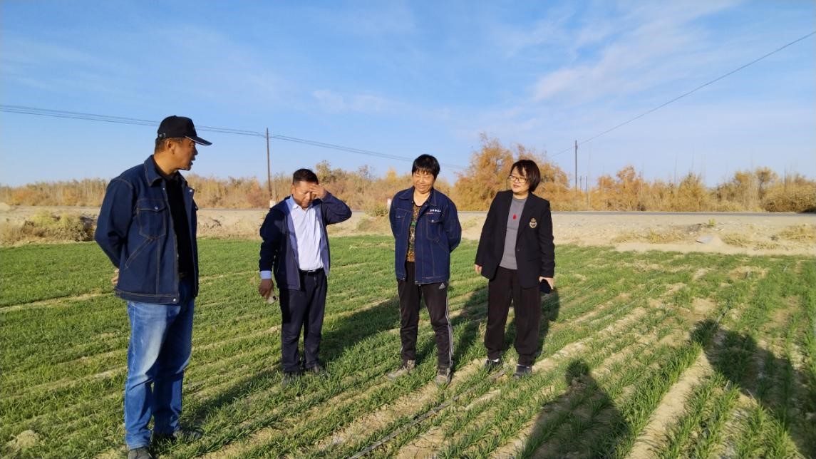 在華大基因牧草示范點詳細了解了正在試種的沙漠鹽堿地治理情況,試種的80畝狼尾草覆蓋了原先的沙漠鹽堿地,為治理沙漠鹽堿地和防風治理提供了成功案例。在且末縣烏拉格鎮,農業發展有限公司詳細了解了土地鹽堿地治理方面的情況,1萬畝的荒地、戈壁被改造成整齊的塊狀條田,綠油油的冬小麥郁郁蔥蔥。