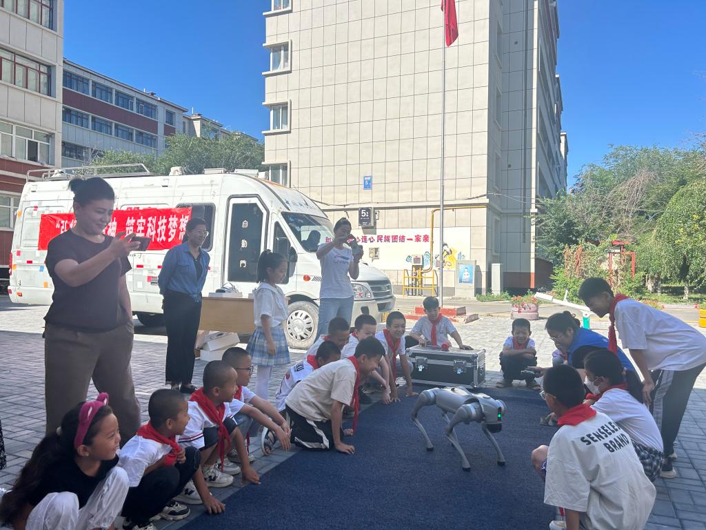 科普大篷車滿載著“電影原理”“無弦琴”“離心力”等涵蓋聲、光、電、磁多種領域的“流動科技館”展具,吸引了社區居民駐足觀看、詢問,不少居民還積極地親身實踐體驗操作,沉浸式感受科學的神奇力量。此外,VR眼鏡體驗和機器狗舞蹈表演備受小朋友們歡迎。“我感覺我跟海豚一起在深海遨游哎”體驗VR眼鏡的小朋友不禁感嘆,還有與機器狗一起互動舞蹈的精彩瞬間。