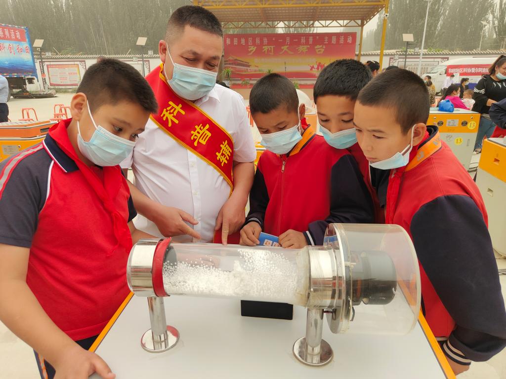 此次巡展活動主要以發放科普圖書、操作科學小實驗、科普展板、球幕影院、科普眼科義診、科普展教具、無人機、機器人展示等項目給大家進行科普宣傳,活動覆蓋和田市肖爾巴格鄉27個村社區及周邊鄉鎮。