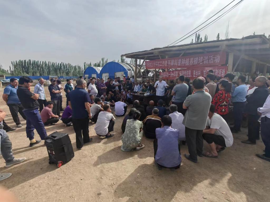 5月25日下午,應和田縣科協邀請,地區老科協畜牧專家買買提敏·阿卜杜拉一行3人來到和田縣布扎克鄉其來克村,開展畜牧養殖科普培訓服務活動。