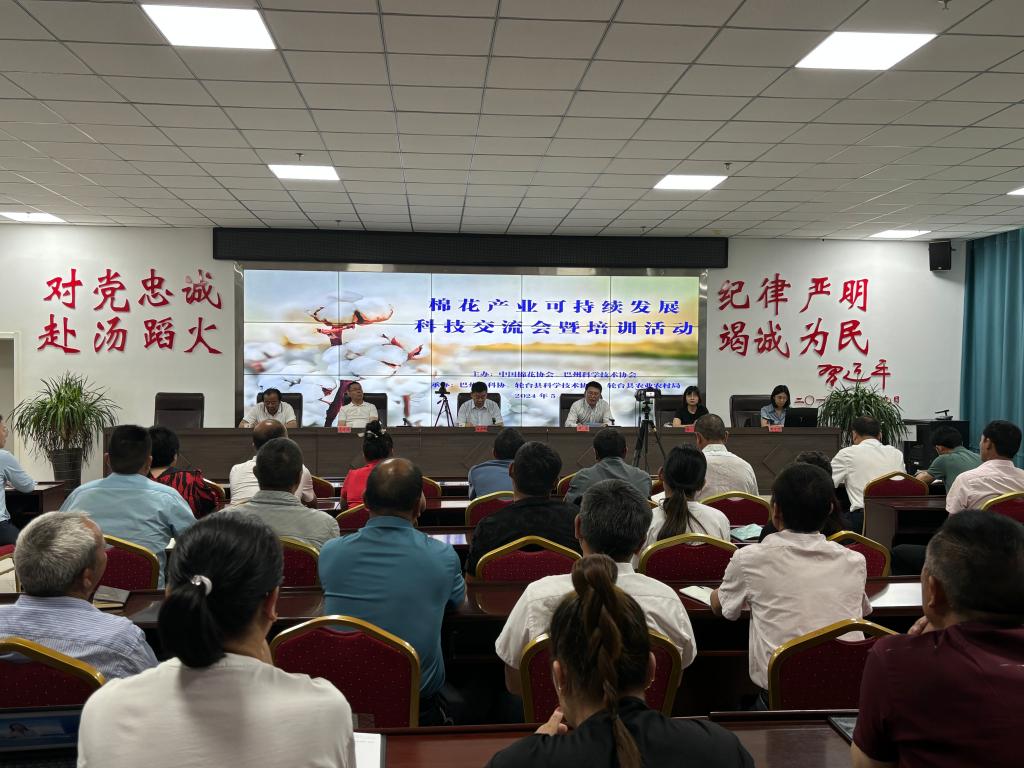 5月23日,在第八個(gè)全國科技工作日來臨之際,由中國棉花協(xié)會(huì)、巴州科協(xié)主辦,巴州老科協(xié)、輪臺(tái)縣科協(xié)、輪臺(tái)縣農(nóng)業(yè)農(nóng)村局協(xié)辦的“棉花產(chǎn)業(yè)可持續(xù)發(fā)展”科技交流會(huì)暨培訓(xùn)活動(dòng)在輪臺(tái)縣舉辦。輪臺(tái)縣委常委安金鵬主持會(huì)議,巴州科協(xié)黨組成員、副主席周政致辭。活動(dòng)通過科普中國、巴州科協(xié)抖音平臺(tái)、中國移動(dòng)和直播、輪臺(tái)零距離等平臺(tái)同步直播。
