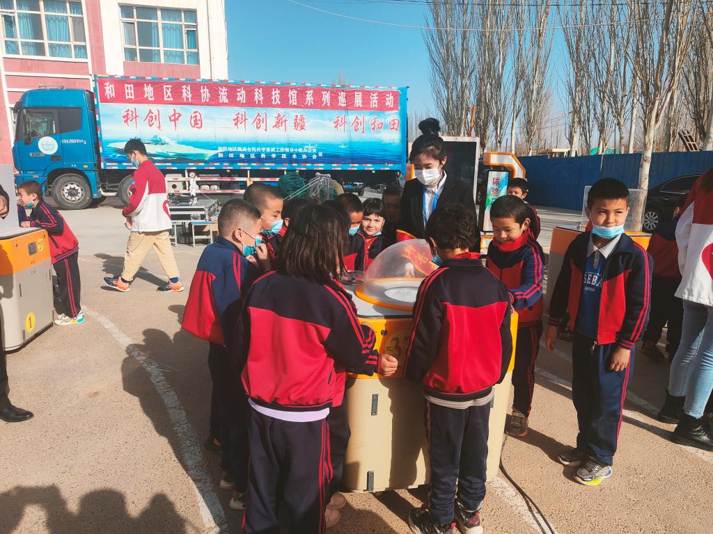 2023年3月7日至10日,和田地區(qū)科協(xié)與北京一片星空天文科普促進(jìn)中心、地區(qū)團(tuán)委聯(lián)合開(kāi)展的 “螢火蟲(chóng)計(jì)劃-鄉(xiāng)村科普百校行”活動(dòng),活動(dòng)共去了四所學(xué)校,和田縣塔瓦庫(kù)勒鄉(xiāng)巴克墩村小學(xué)、和田市肖爾巴格鄉(xiāng)中心小學(xué)、墨玉縣加汗巴格鄉(xiāng)達(dá)拉斯喀勒小學(xué)及洛浦縣第一小學(xué)。我們通過(guò)流動(dòng)科技館巡展為當(dāng)?shù)氐暮⒆觽兯腿ゼ壬鷦?dòng)又妙趣橫生的科普活動(dòng),同時(shí)還為孩子們捐贈(zèng)豐富的科普物資及書(shū)籍。