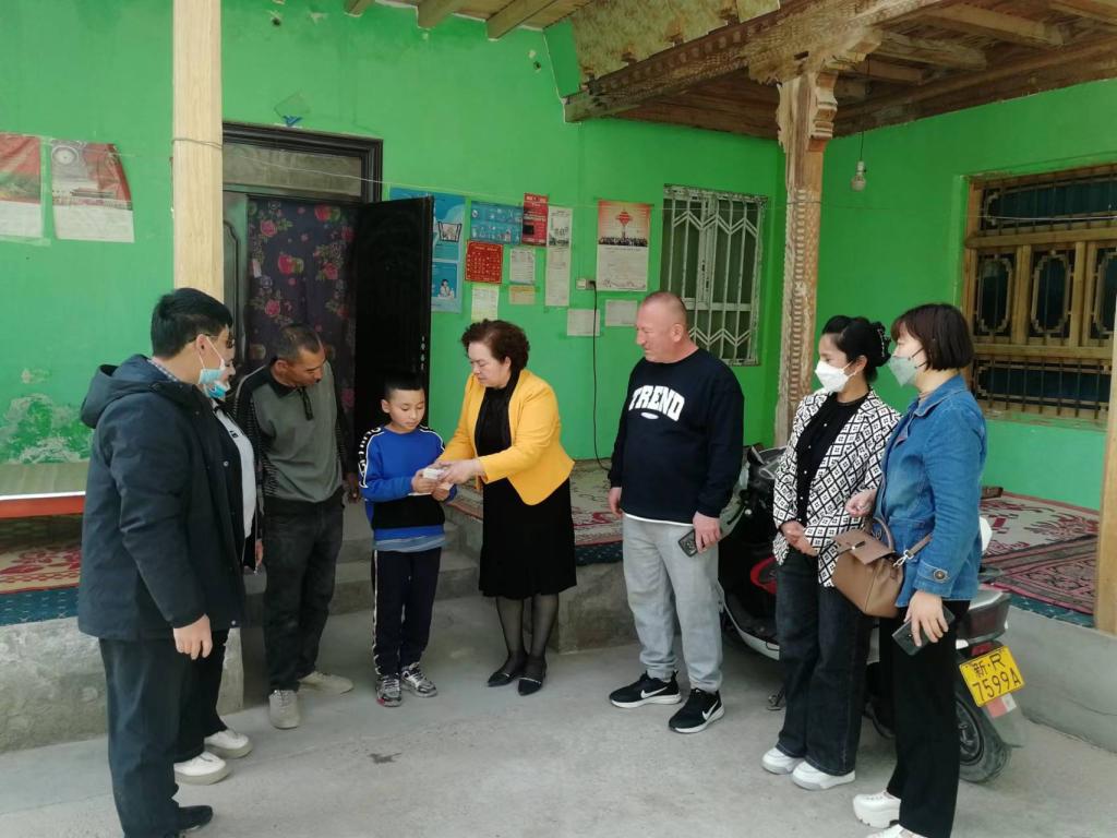 病魔無情,人間有愛!4月3日,和田地區科協縣級領導米娜瓦爾·胡冬拜地一行,代表地區科協黨組來到阿克塔什村4小隊,將3670元愛心捐款交到重病小孩阿布都熱合曼·買吐送的父親手中。