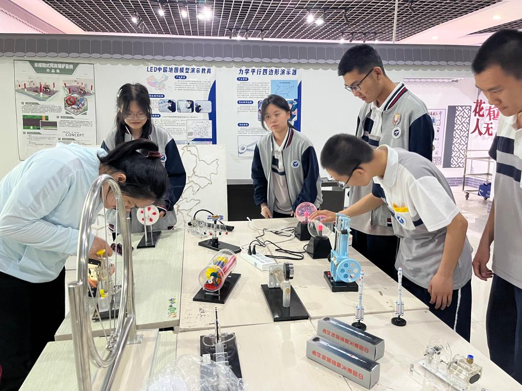 在科技展廳里,科普大篷車(chē)帶來(lái)的“立體動(dòng)畫(huà)”“人體發(fā)聲”等6套集光學(xué)、力學(xué)等物理知識(shí)和科學(xué)原理的教具,阿爾法機(jī)器人,科學(xué)家精神展板吸引了不少過(guò)往同學(xué)前來(lái)現(xiàn)場(chǎng)觀看和體驗(yàn)操作。