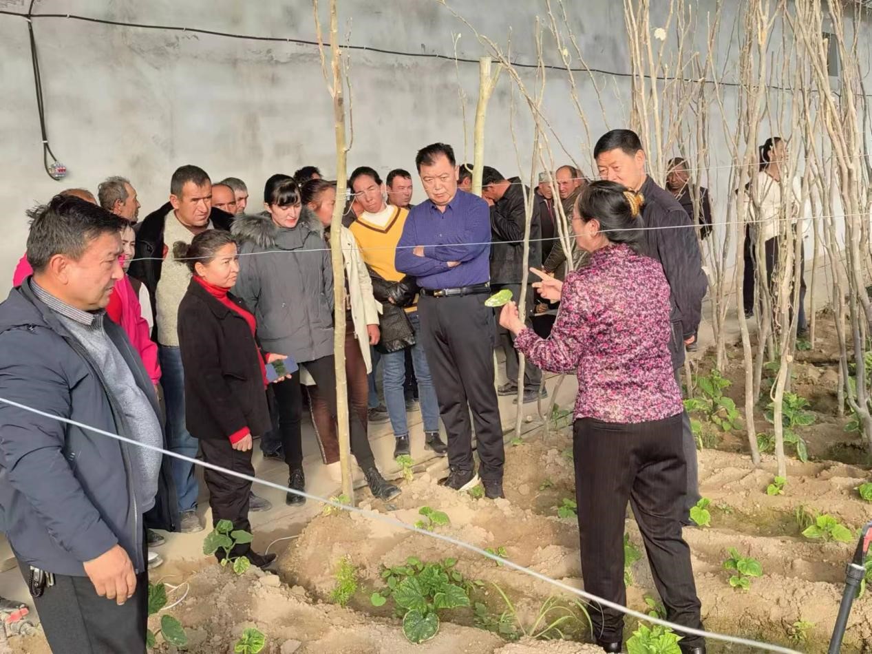 在且末縣阿熱勒鎮蔬菜溫室大棚,若羌縣鐵干里克鎮古力巴格村蔬菜大棚針對溫室大棚蔬菜的種植管護開展現場教學,種植農民針對種植蔬菜過程中存在的問題積極提問,巴州老科協農業分會專家楚金萍在現場一一進行解答群眾對大棚內的葫蘆瓜、辣椒、黃瓜等在種植中遇到對施肥比例,澆水、管護等提出的問題。針對葫蘆瓜種植行距過寬的問題,建議每三行增加一行;黃瓜中間預留面積較寬,提出滴管增加一行的建議;針對大棚蔬菜的管護,指導農戶要正確授粉,及時施肥打藥,進一步提高經濟收入,專家現場講解得生動,農戶聽得認真,深受群眾歡迎。