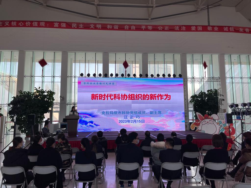 為進(jìn)一步提高克拉瑪依市科協(xié)干部職工的業(yè)務(wù)水平和專業(yè)素養(yǎng),2023年2月15日上午,克拉瑪依市科協(xié)業(yè)務(wù)培訓(xùn)大講堂第一講在克拉瑪依科技館正式開講,市科協(xié)黨組成員、副主席汪正巧作為主講人為市科協(xié)全體干部職工上了一節(jié)生動(dòng)而詳實(shí)的培訓(xùn)課。