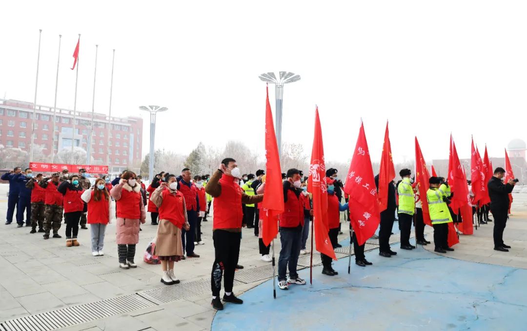 啟動儀式上,烏蘇市對2022年度表現突出的5支優秀志愿服務隊和2個優秀志愿服務項目進行了表彰,全體志愿者莊嚴宣誓,承諾將踐行志愿精神,傳播新思想,弘揚新風尚。