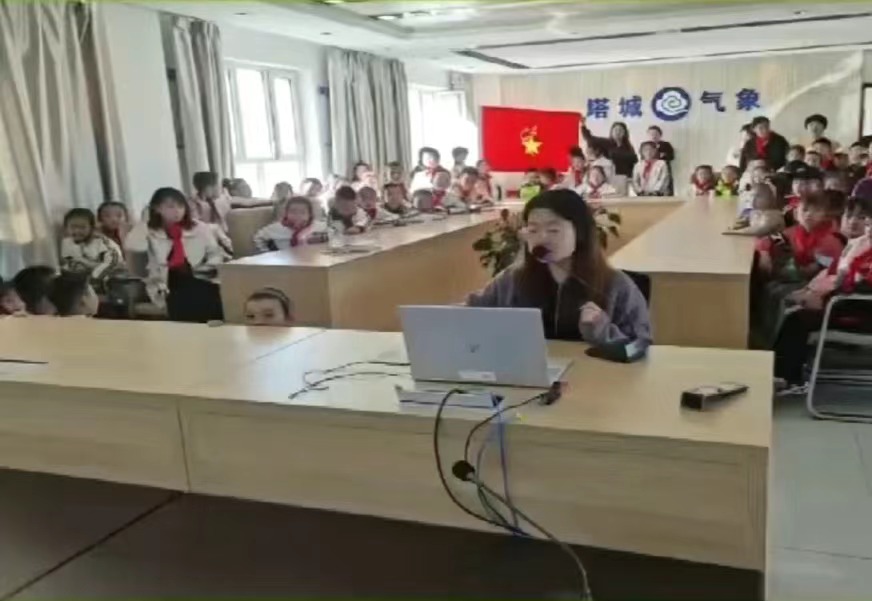 活動現(xiàn)場,科技工作者帶領(lǐng)同學(xué)們參觀了氣象觀測儀器、塔城氣象發(fā)展史展館,針對如何測量氣溫、如何采集各種氣象信息、天氣預(yù)報的制作流程,各種測量儀器的用途和消冰增雨的知識等內(nèi)容進(jìn)行了詳細(xì)的講解和說明。
