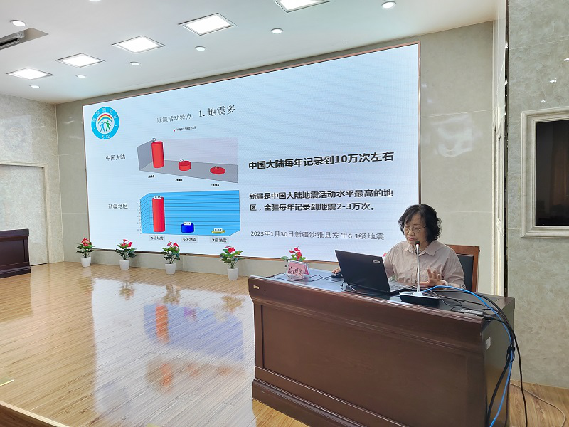 在本次講座過程中,高國英研究員通過豐富的圖片、視頻展示,形象直觀地講解了地震活動特點、地震逃生等相關科普知識,特別是對新疆地區地震帶分布、地震震情分析,以及如何做好地震應急處置等方面,給大家上了一堂生動的科普課。