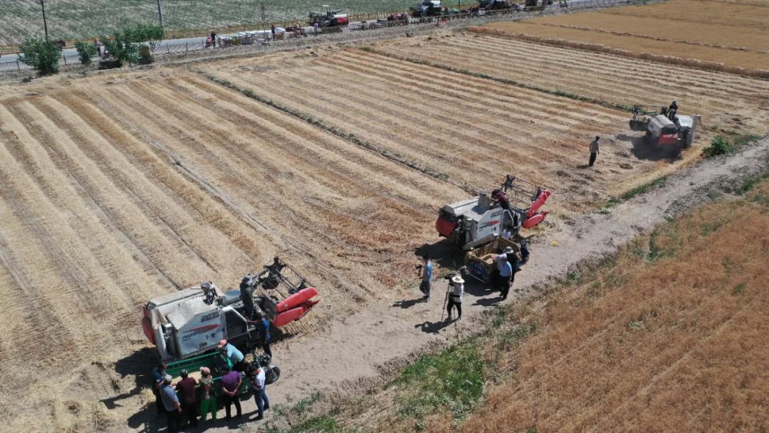 5月30日,葉城縣小麥收割在江格勒斯鄉夏勒迪壤村開鐮,標志著葉城縣2022年“三夏”小麥搶收工作全面開始。