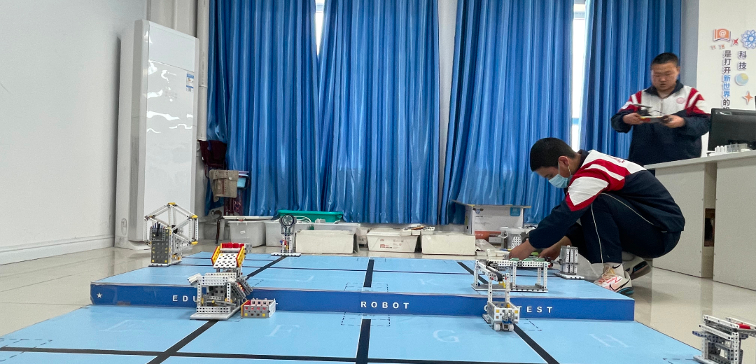 課上,同學們分成小組,有的對機器人進行組裝,有的對機器人進行調試實驗,并進行優化。還有不少小組對自己組裝、調試過的機器人進行問題記錄,對機器人與程序進行優化重試。