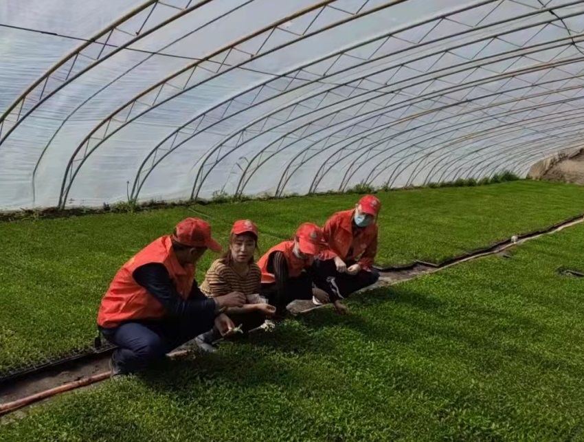 科技志愿者耐心給農戶講解問題并提出解決辦法,苗期脫肥,主要是缺少植物生長所需的必要元素,并主要表現在前期。穴盤內土壤不夠肥沃,秧苗出現缺肥癥狀時,應及時追肥。主要表現癥狀為葉片發黃,嚴重時可造成子葉掉落,植株免疫力變低,其它病害更容易侵襲植株體。