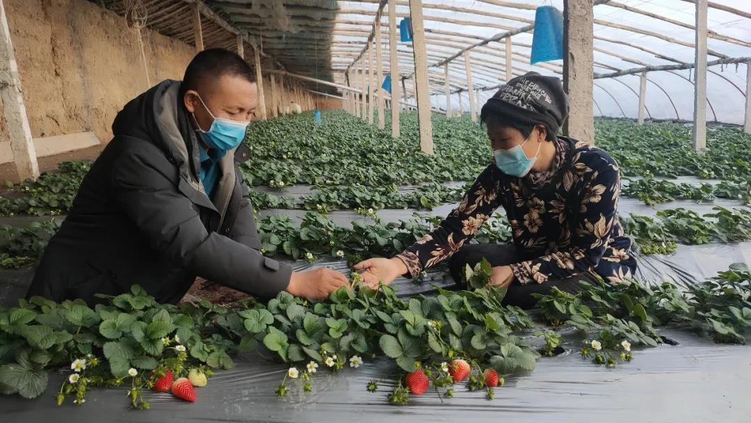 1月10日,和靜縣巴潤哈爾莫敦鎮阿日勒村大棚草莓長勢正旺,已進入收獲期,村民秦洪鳳正在草莓園里修枝剪葉,忙得不亦樂乎。