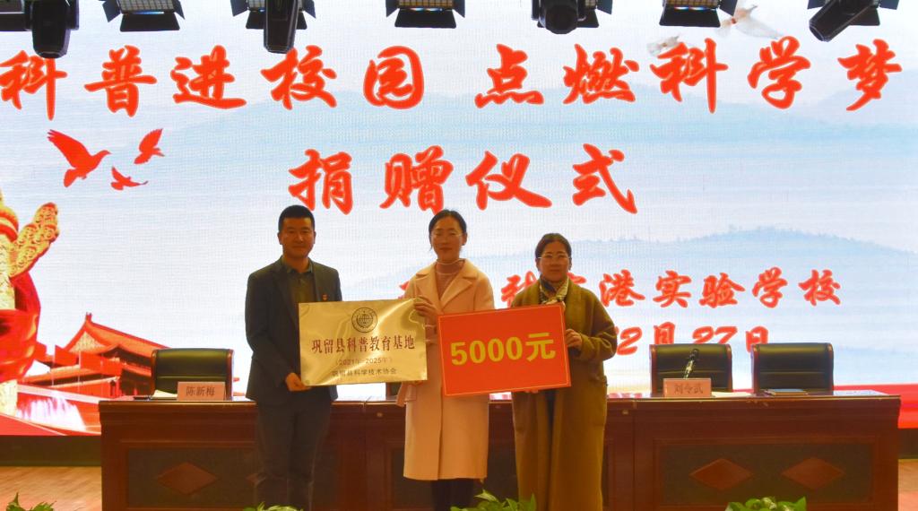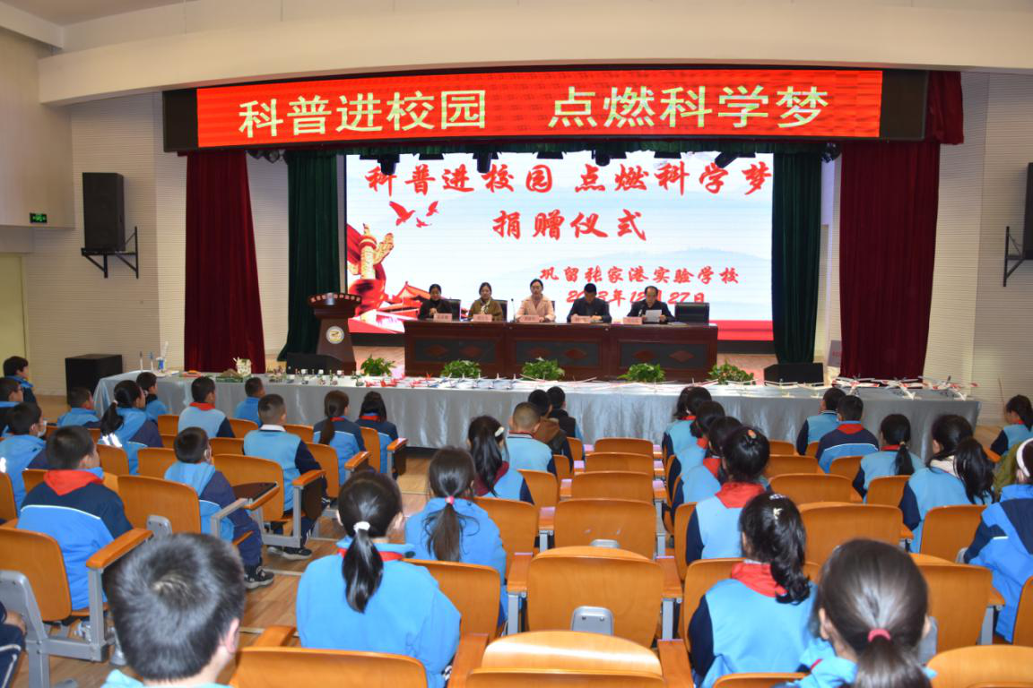 12月27日下午,鞏留張家港實(shí)驗(yàn)學(xué)校在演播大廳舉行“科普進(jìn)校園 點(diǎn)燃科學(xué)夢(mèng)”捐贈(zèng)儀式??h科協(xié)黨組書(shū)記周振華同志、學(xué)校黨總支書(shū)記鐘磊同志、校長(zhǎng)西日乃同志及學(xué)校100名學(xué)生參加了活動(dòng)。